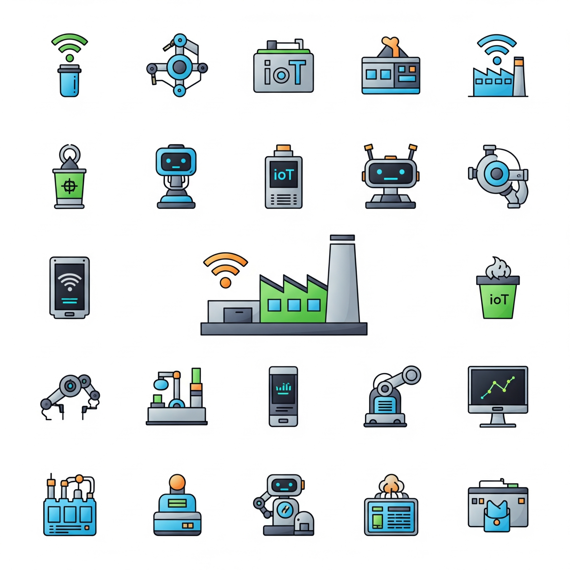 - 現代のデジタルアイコン(ロボット、IoT):